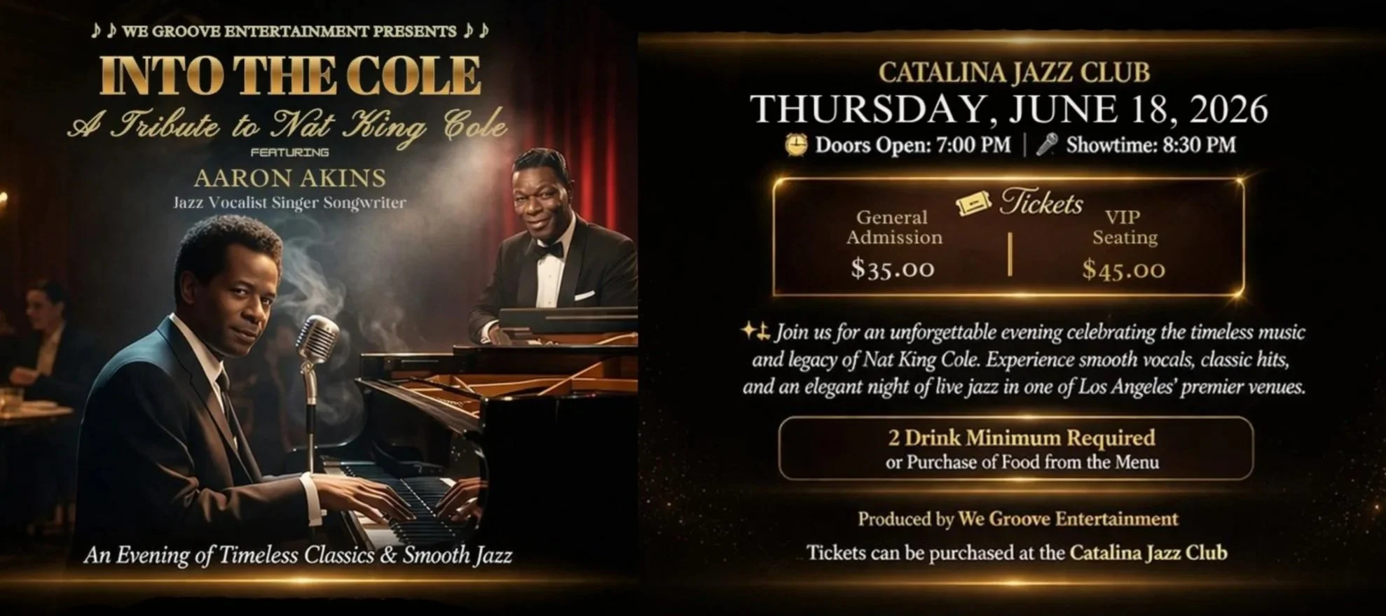 Devotion to music won out in the long run though and Aaron began performing in nightclubs and other venues, where he sang his Into the Cole show — a tribute performance to one of Aaron’s great musical inspirations, Nat King Cole.